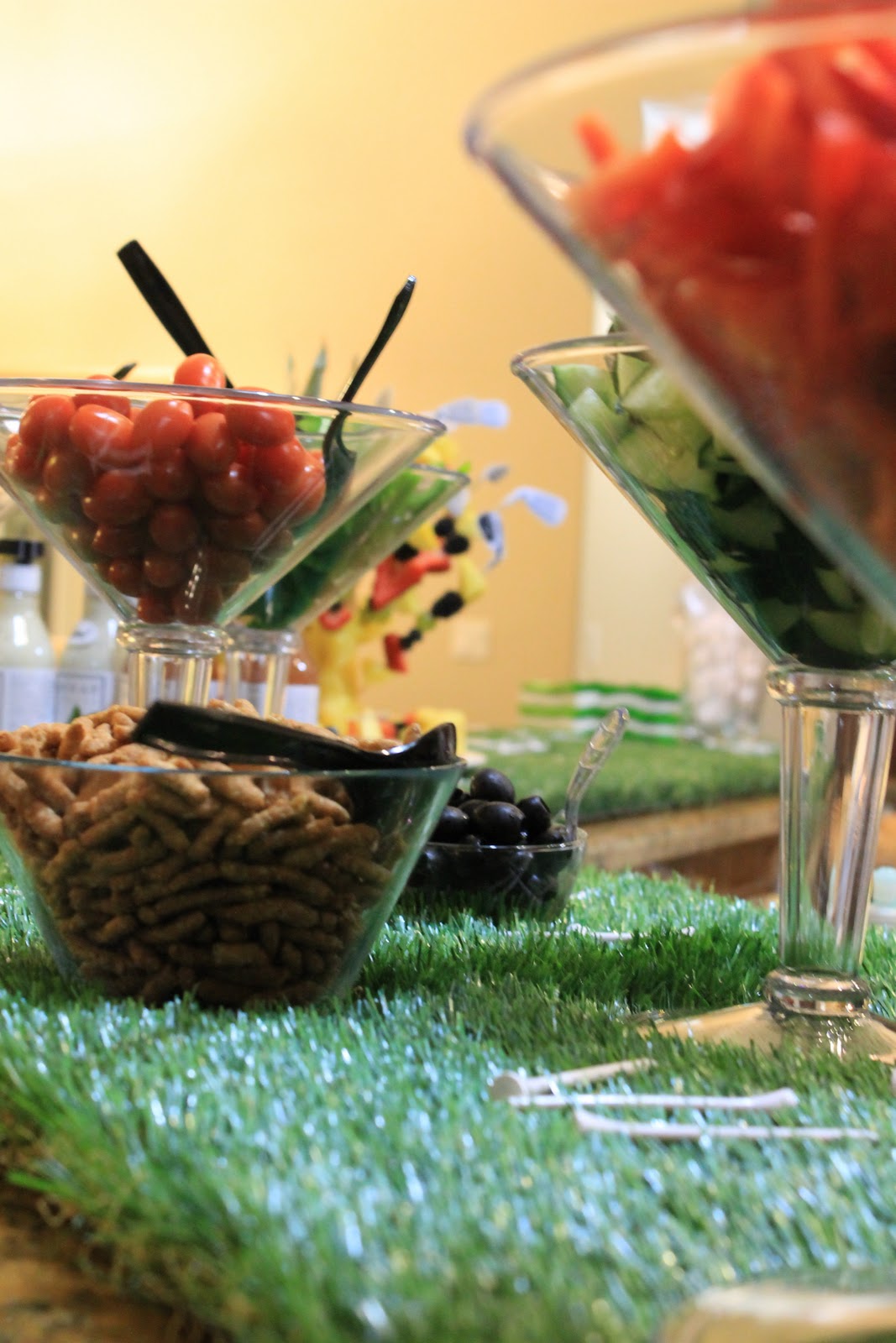 We set up a self-serve salad bar complete with every topping you could think of. The over-sized martini glasses were perfect for holding the goodies. Pretty sure no one went home hungry that night!